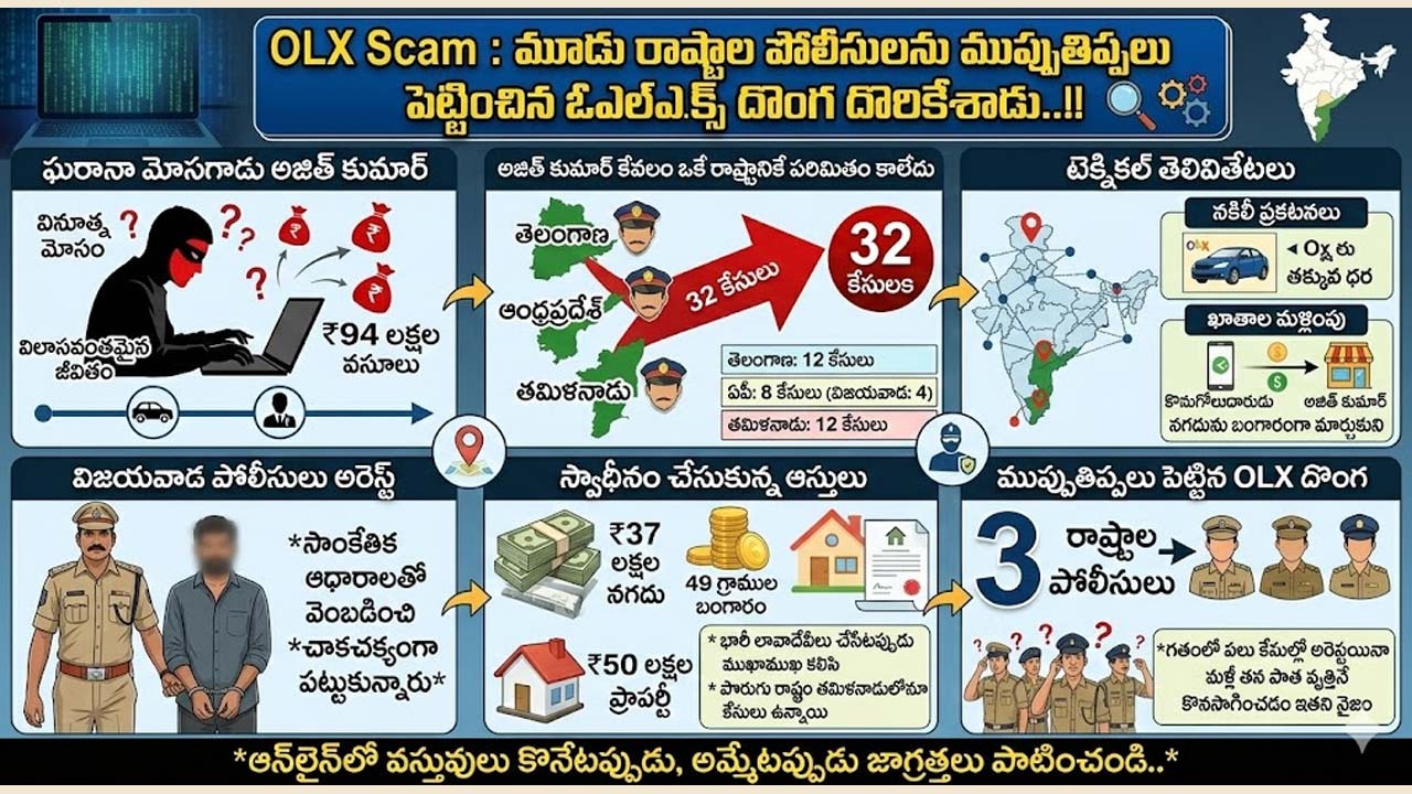 ఆన్లైన్ క్రయవిక్రయాల వేదిక ‘ఓఎల్ఎక్స్’ (OLX) ద్వారా అమాయకులను బురిడీ కొట్టిస్తూ, మూడు రాష్ట్రాల పోలీసులకు సవాల్గా మారిన ఘరానా మోసగాడు అజిత్ కుమార్ ఎట్టకేలకు చిక్కాడు.
