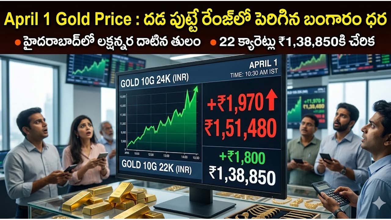హైదరాబాద్ బులియన్ మార్కెట్లో బంగారం ధరలు సామాన్యులకు చుక్కలు చూపిస్తున్నాయి. ఏప్రిల్ 1వ తేదీన పసిడి ధరలు ఊహించని రీతిలో పెరిగి సరికొత్త రికార్డును సృష్టించాయి. అంతర్జాతీయ మార్కెట్లో నెలకొన్న అనిశ్చితి, రూపాయి విలువ క్షీణించడం మరియు పశ్చిమాసియాలో పెరుగుతున్న ఉద్రిక్తతల ప్రభావం నేరుగా స్థానిక మార్కెట్పై పడింది. గత కొన్ని రోజులుగా పెరుగుతూ వస్తున్న ధరలు, నేడు ఒక్కసారిగా భారీ జంప్ తీసుకోవడంతో కొనుగోలుదారులు బెంబేలెత్తిపోతున్నారు. ముఖ్యంగా పెళ్లిళ్ల సీజన్ సమీపిస్తున్న తరుణంలో ఈ స్థాయిలో ధరలు పెరగడం మధ్యతరగతి కుటుంబాలకు పెద్ద భారంగా మారింది.