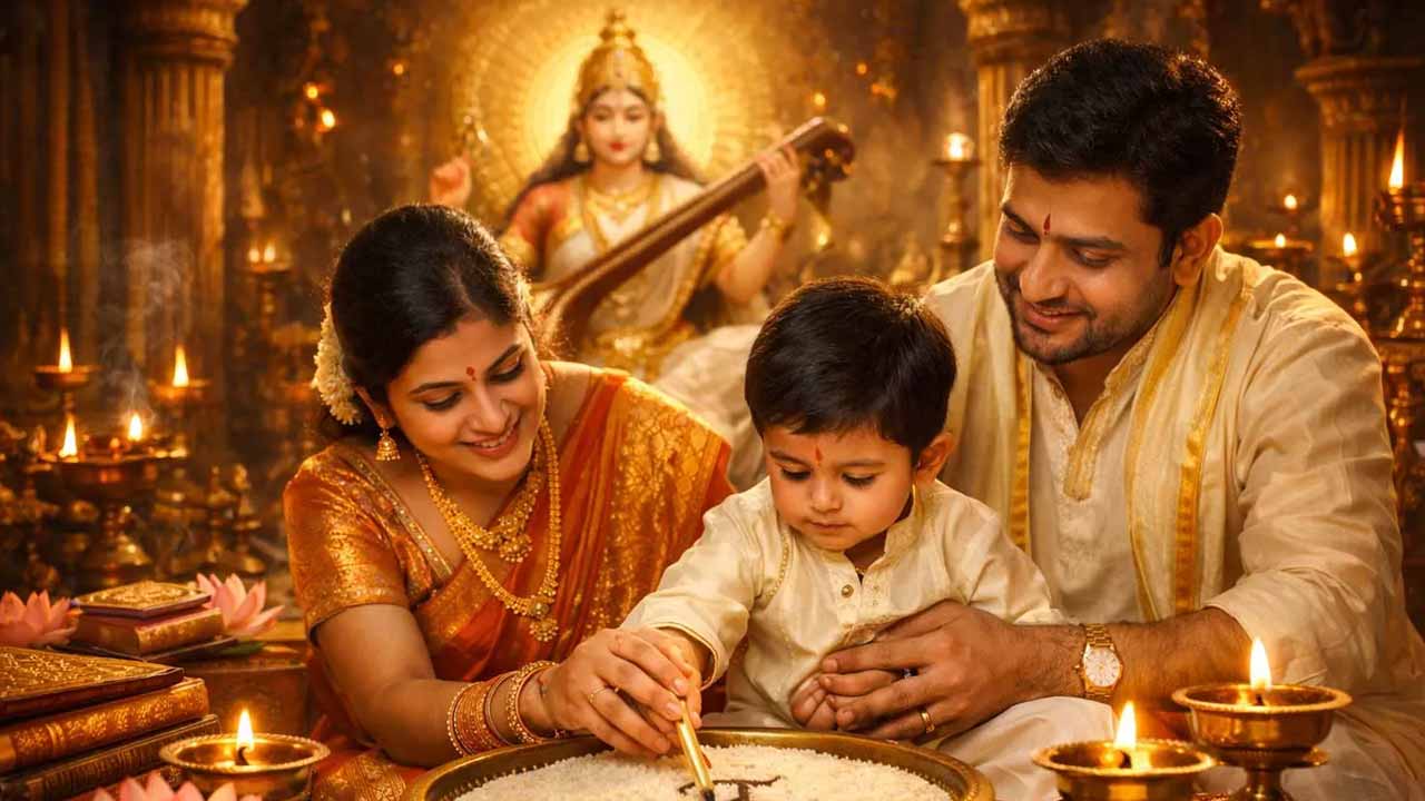 వసంత పంచమి రోజు అక్షరాభ్యాసం చేయిస్తే పిల్లలు ఉన్నత విద్యావంతులు అవుతారని పండితులు చెబుతున్నారు. “ఓం ఐం సరస్వత్యై నమః” అనే మంత్రోచ్ఛారణతో విద్యారంభం చేయడం ఆనవాయితీ. విద్యార్థులు పుస్తకాలు, వాద్యాలు, కలాల పరికరాలను అమ్మవారి ముందు ఉంచి ఆశీర్వాదాలు కోరుకుంటారు. ఉద్యోగాల్లో ఉన్నవారు జ్ఞానంతో పాటు నైపుణ్యాలు పెరిగి ప్రగతి సాధించాలని ప్రార్థిస్తారు. ఈ పర్వదినం సందర్భంగా ప్రతి ఇంటా పసుపు వర్ణ వస్త్రాలు, పుష్పాలతో పూజలు నిర్వహిస్తూ ఆనందోత్సాహాలతో వేడుకలు జరుపుకుంటారు. సరస్వతీ దేవి కరుణా కటాక్షాలు అందరిపై నిలిచి విద్యలో, ఉద్యోగాల్లో, కళలలో ప్రతిభ వెలుగొందాలని కోరుకుంటూ వసంత పంచమి శుభాకాంక్షలు తెలియజేస్తున్నారు. జ్ఞానం వెలుగులు నింపే ఈ పవిత్ర దినం ప్రతి ఒక్కరి జీవితంలో సఫలతలు సద్గుణాలు పుష్కలంగా ప్రసాదించాలని ఆకాంక్షిస్తున్నారు.
