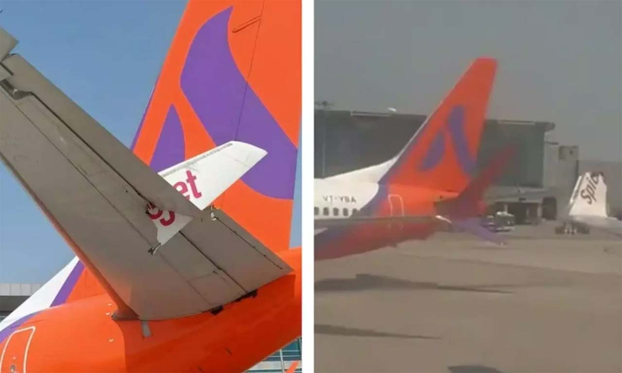 గురువారం (ఏప్రిల్ 16, 2026) నాడు ట్యాక్సీ వేపై కదులుతున్న స్పైస్జెట్ విమానం, అక్కడ ఆగి ఉన్న అకాసా ఎయిర్ విమానాన్ని ఢీకొట్టింది. స్పైస్జెట్ విమానం రెక్క కొన (Wing tip) వేగంగా వెళ్తూ అకాసా ఎయిర్ విమానం రెక్కను తాకడంతో