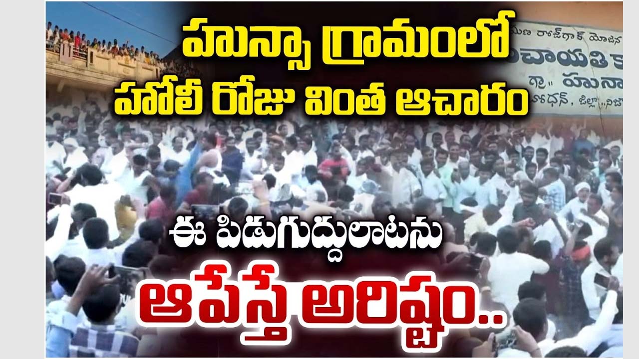 Holi Celebrations in Hunsa Village : తెలంగాణలోని నిజామాబాద్ జిల్లాలో హోలీ పండుగ వేళ ఒక వింతైన, ఒళ్లు గగుర్పొడిచే సాంప్రదాయం వెలుగులోకి వచ్చింది. సాధారణంగా రంగులు పూసుకుని జరుపుకునే ఈ పండుగను, సాలూర మండలం హున్సా గ్రామస్థులు మాత్రం రక్తం చిందించేలా ‘పిడిగుద్దుల’ ఆటతో జరుపుకుంటారు. ఏటా నిర్వహించే ఈ వింత క్రీడలో భాగంగా గ్రామస్థుల మధ్య పిడికిళ్లతో యుద్ధం జరుగుతుంది. తరతరాలుగా వస్తున్న ఈ ఆచారం ప్రకారం, హోలీ రోజున రక్తం చిందితేనే గ్రామానికి శుభం జరుగుతుందని, వర్షాలు బాగా కురిసి పంటలు పండుతాయని ఇక్కడి ప్రజల నమ్మకం.