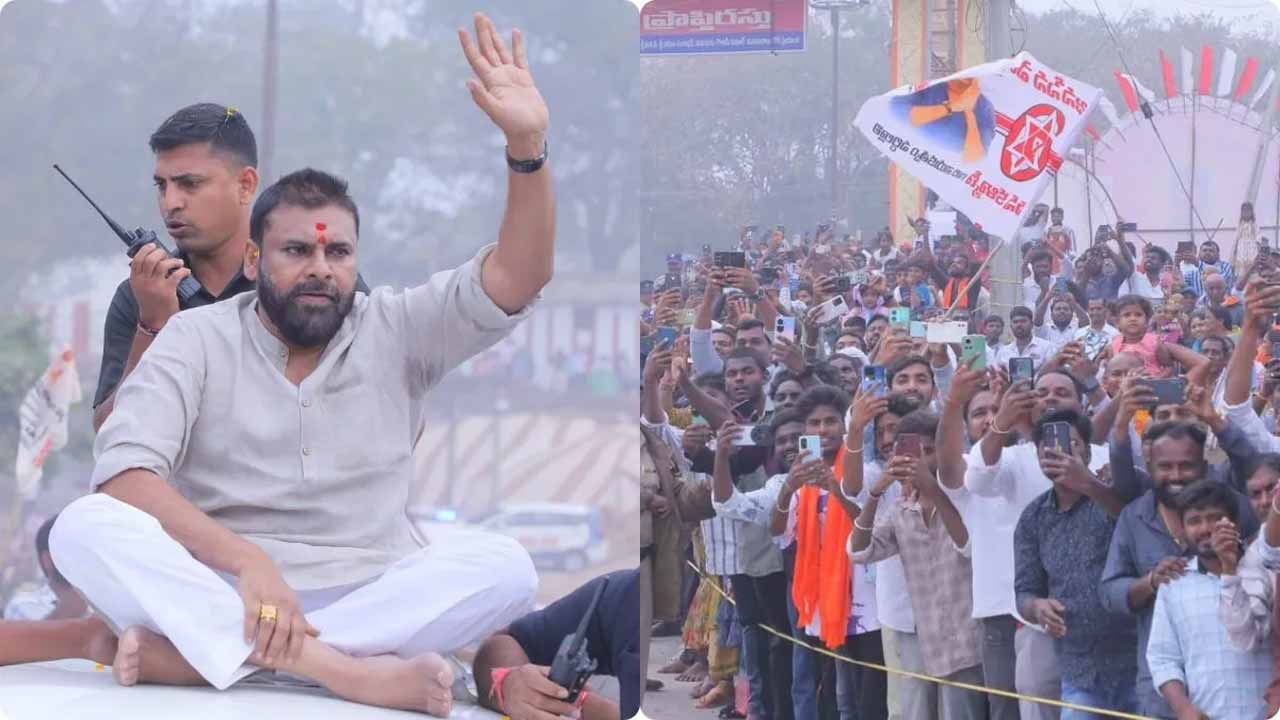 అయితే, కారు నెమ్మదిగా ముందుకు సాగుతున్న సమయంలో ఊహించని రీతిలో ఒక ప్రమాదకర పరిస్థితి ఎదురైంది. రహదారికి అడ్డంగా చాలా తక్కువ ఎత్తులో విద్యుత్ లేదా ఇంటర్నెట్ కేబుల్ వైర్లు వేలాడుతూ ఉన్నాయి. కారుపై కూర్చుని ఉండటం వల్ల పవన్ కళ్యాణ్ తల ఆ వైర్లకు తగిలే అవకాశం ఏర్పడింది. ప్రమాదాన్ని ముందే గమనించిన పవన్ కళ్యాణ్ అత్యంత చాకచక్యంగా, మెరుపు వేగంతో వెనక్కి పడుకున్నారు. ఆయన అప్రమత్తత వల్ల ఆ కేబుల్స్ తలకు తగలకుండా పైనుంచి వెళ్ళిపోయాయి. ఈ దృశ్యాన్ని చూసిన అక్కడి వారు ఒక్కసారిగా షాక్కు గురయ్యారు.